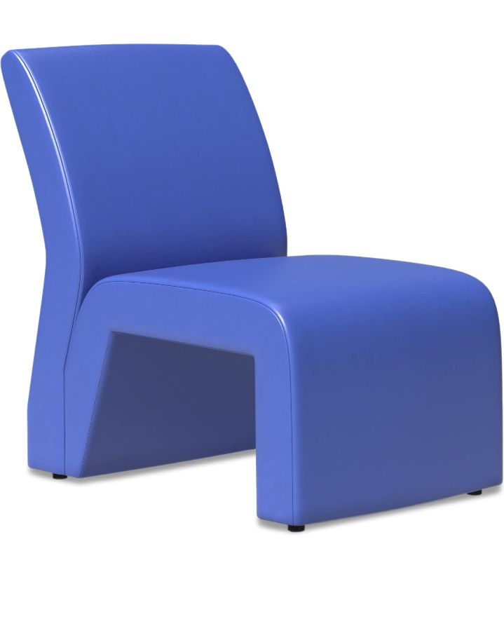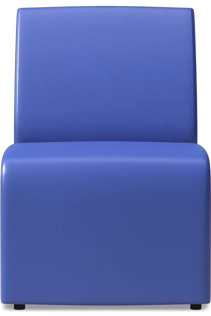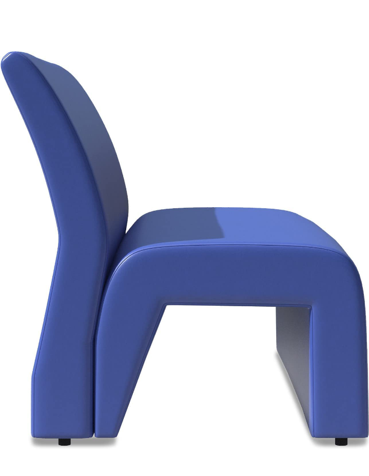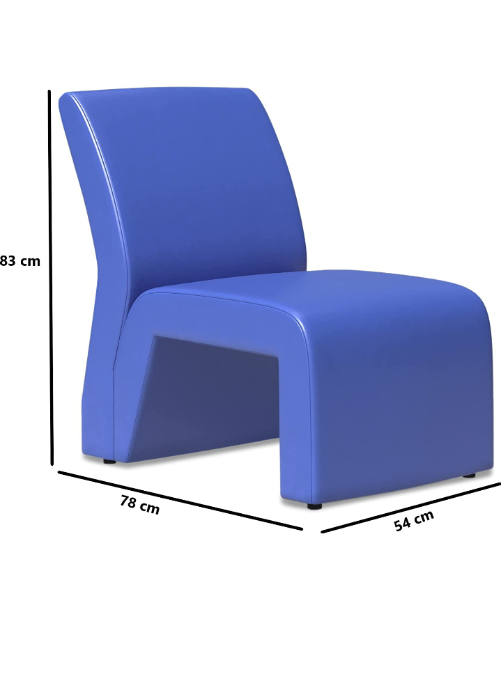 This single seater sofa by Modern India Seating features a contemporary armless sculptural design in blue leatherette. Dimensions: H 83cm, W 54cm, D 78cm.