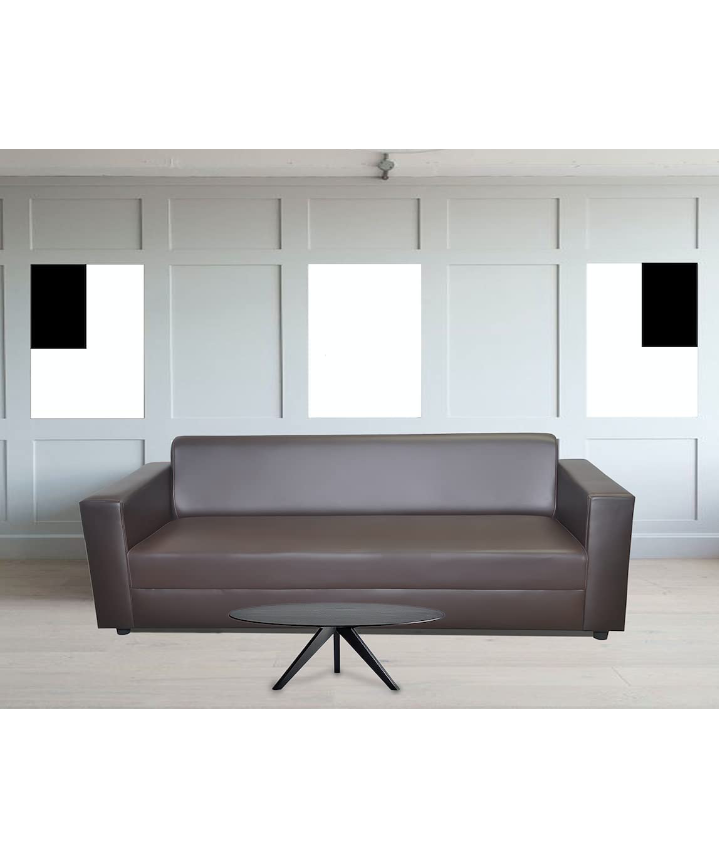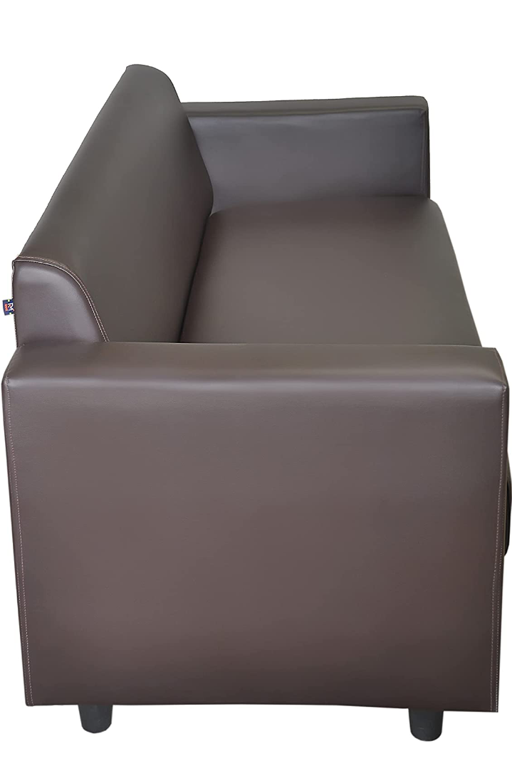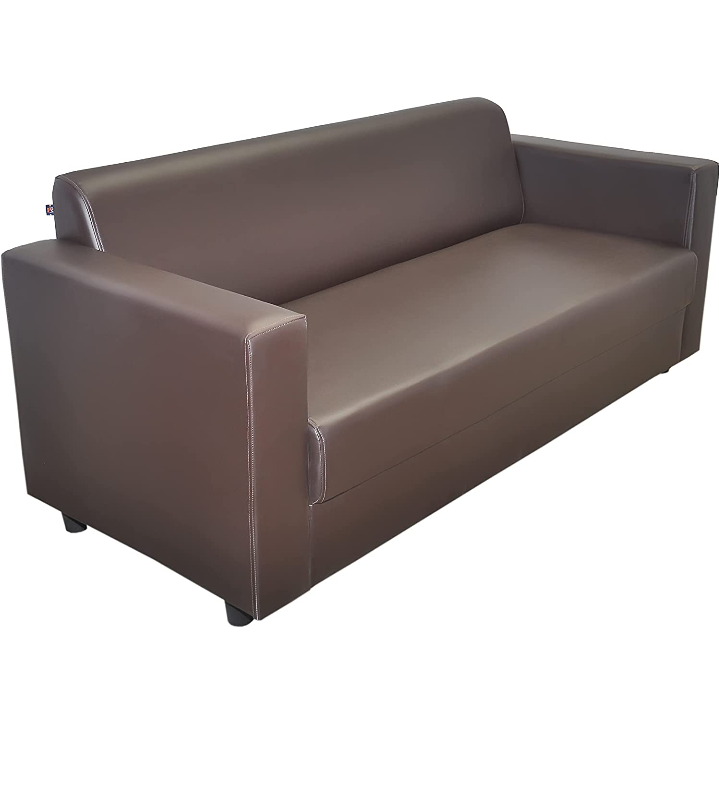 This 3-seater sofa from Modern India Seating in brown leatherette offers a classic, durable design with boxy arms, suitable for office reception areas or homes.