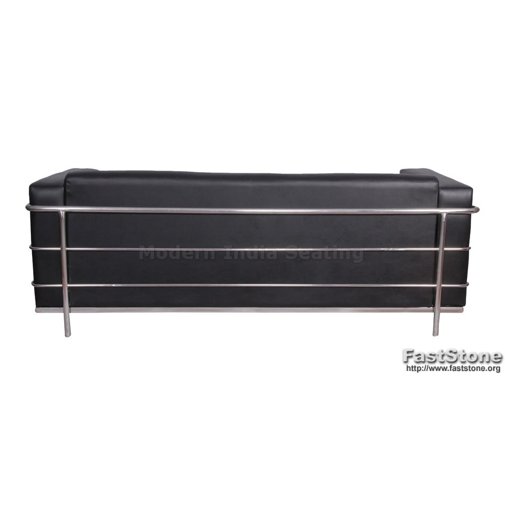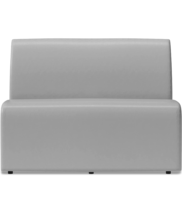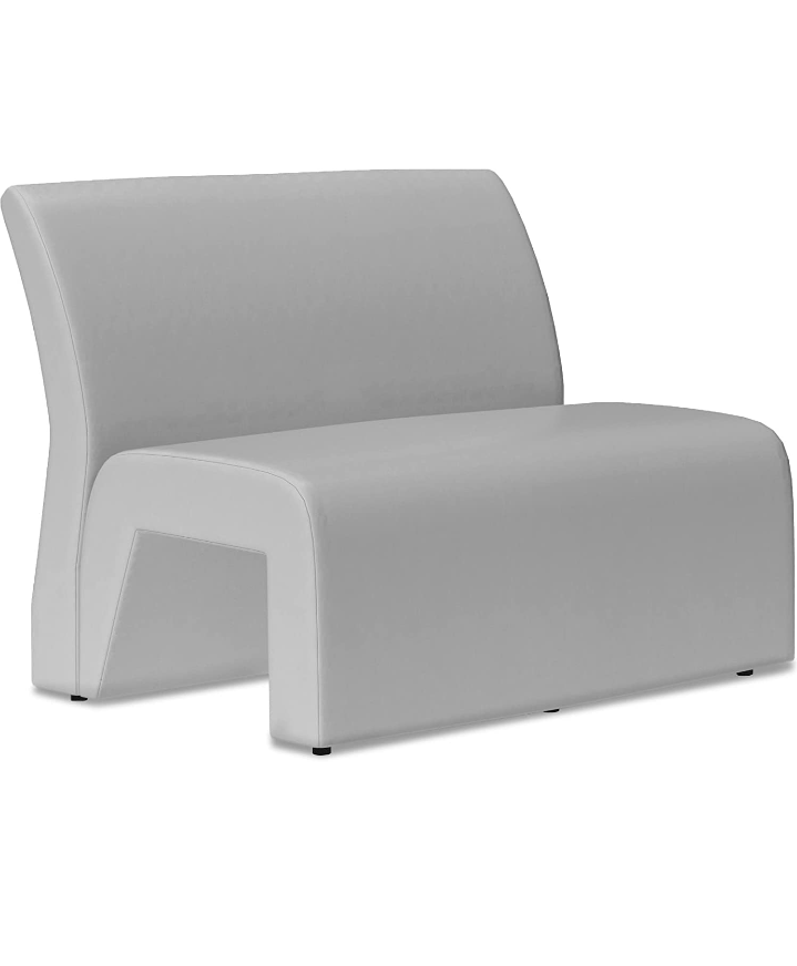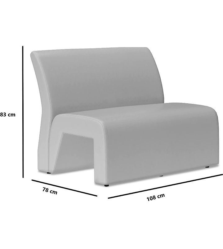 This 2-seater sofa by Modern India Seating features a contemporary armless sculptural design in light grey leatherette. Dimensions: H 83cm, W 108cm, D 78cm.